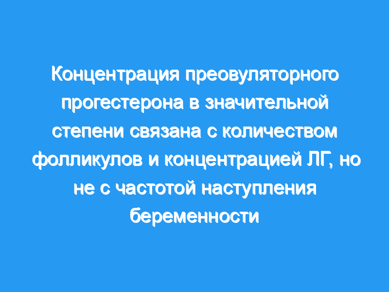 Настоящее исследование не подтверждает связь между концентрацией прогестерона в день введения ХГЧ и вероятностью клинической беременности у женщин, проходящих стимуляцию яичников агонистами ГнРГ и гонадотропинами для лечения вспомогательной репродукции.Вместо этого концентрация прогестерона в поздней фолликулярной фазе, по-видимому, определяется количеством преовуляторных фолликулов и концентрацией ЛГ.