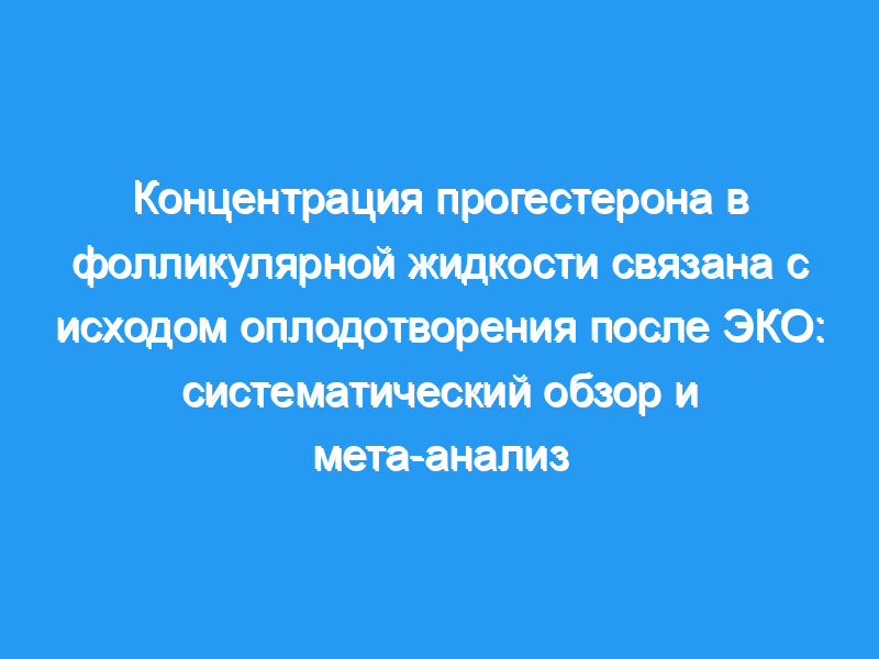 Для этого были проведены систематический обзор и мета-анализ, при этом был проведен поиск литературы в трех базах данных (PubMed, Embase и Библиотека Кокрейна), чтобы выявить все соответствующие исследования, опубликованные до 19 августа 2017 года. Были получены данные из 13 исследований (четыре интрацитоплазматические инъекции сперматозоидов [ИКСИ] и девять обычных ЭКО), и в анализ были включены 1009 индивидуально аспирированных образцов фолликулярной жидкости.