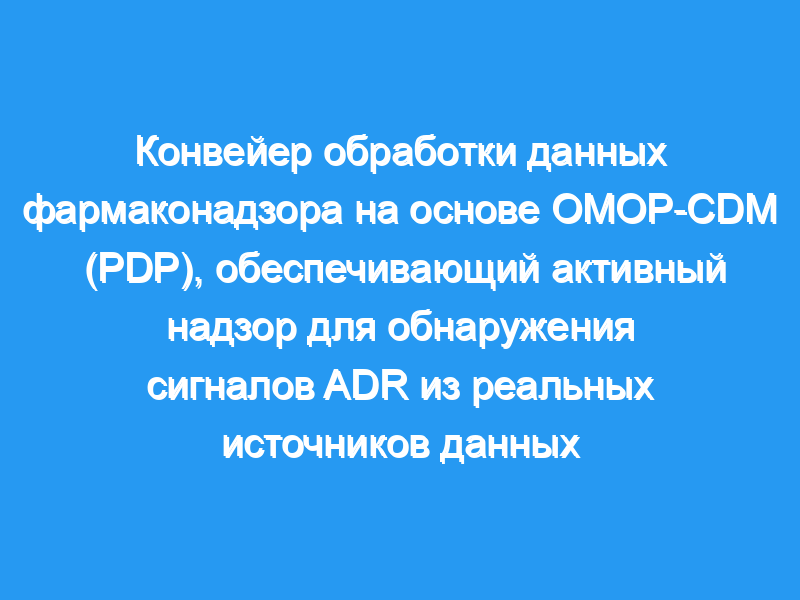 Побочные реакции на лекарственные средства (ADR) рассматриваются как основная причина смерти и основной вклад в расходы общественного здравоохранения. Для активного надзора за безопасностью лекарств важно использовать реальные данные и фактические данные в рамках общего процесса фармаконадзора. В связи с этим во многих исследованиях применяются подходы, основанные на данных, для поддержки фармаконадзора. Мы разработали конвейер обработки данных фармаконадзора (PDP), который использовал электронные медицинские карты (EHR) и данные системы спонтанной отчетности (SRS) для изучения сигналов фармаконадзора.