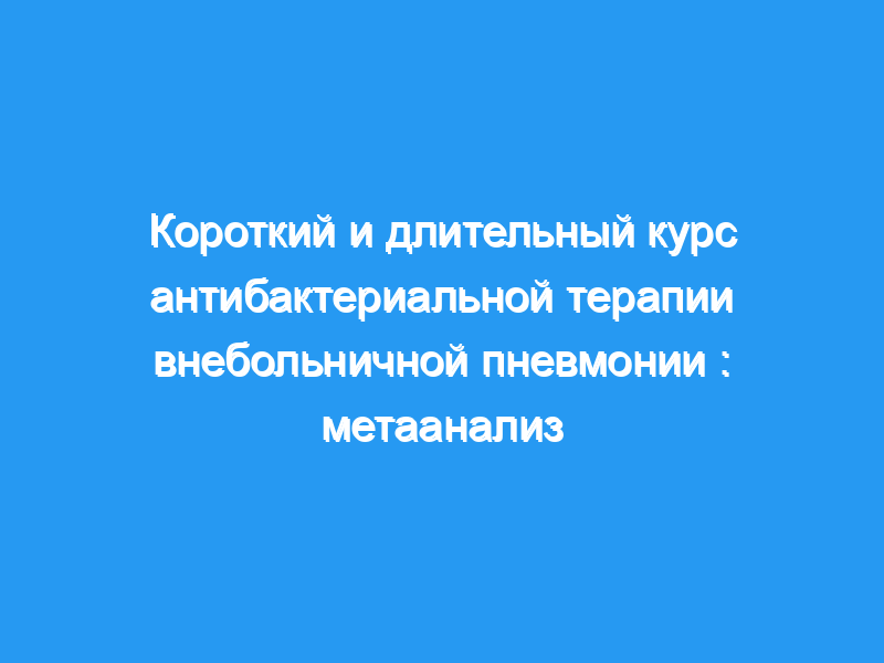 Мы провели мета-анализ рандомизированных контролируемых исследований (РКИ), в которых сравнивались короткие (<, or = 7 дней) и длительные (>, или = разница в 2 дня) курсовая терапия CAP с теми же антибактериальными схемами, в тех же ежедневных дозировках.