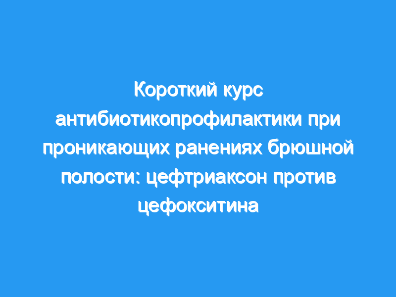 Пациенты получали цефтриаксон или цефокситин в течение 24 ч (при наличии повреждения толстой кишки — 48 ч). Общая частота абдоминального сепсиса составила 7,3% (цефтриаксон — 5%, цефокситин — 9,5%, Р более 0,05). Повреждение толстой кишки было наиболее важным фактором риска развития септических осложнений.