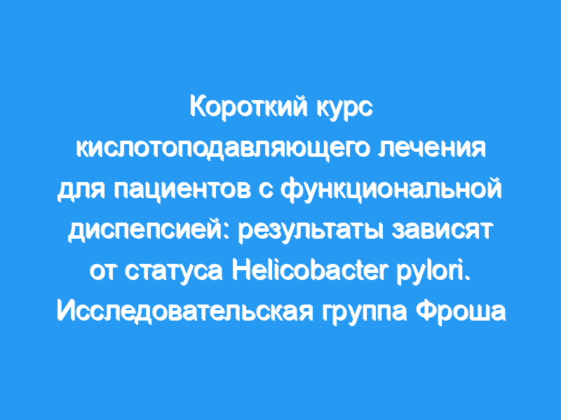 Предпосылки и цели: Лечение функциональной диспепсии ингибиторами кислоты является спорным, и неизвестно, влияет ли наличие инфекции Helicobacter pylori на реакцию.