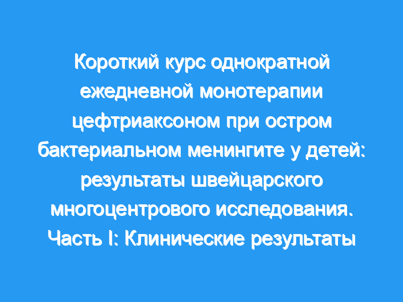 Результаты этого исследования свидетельствуют о том, что кратковременное лечение острого бактериального менингита у детей однократной ежедневной монотерапией цефтриаксоном столь же эффективно, как и полный курс терапии, и, по крайней мере, так же хорошо переносится.