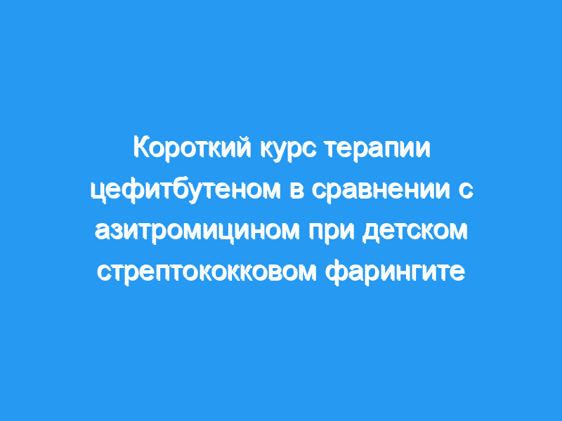 В общей сложности 132 пациента в группе цефтибутена и 116 в группе азитромицина были включены в анализ безопасности, тогда как 126 и 101, соответственно, были включены для оценки эффективности цефтибутена и азитромицина. Клинический успех (излечение или заметное улучшение) на 6-8-й день был зарегистрирован у 98 и 94% во 2 группах соответственно. При анализе бактериологической эффективности через 6-8 дней штамм GABHS был уничтожен у 76% пациентов, получавших цефтибутен, и у 76% пациентов, получавших азитромицин. На 33-35-й день 84% пациентов в группе цефтибутена и 71% в группе азитромицина были GABHS-отрицательными, а бактериологический рецидив наблюдался в 4 и 7% случаев цефтибутена и азитромицина соответственно. Оба метода лечения хорошо переносились всеми пациентами.