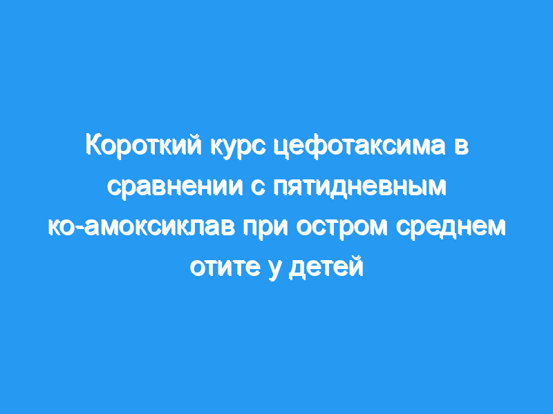 У цефотаксима не было нежелательных побочных эффектов. группе, тогда как 22% детей в группе амоксициллин плюс клавулановая кислота страдали от побочных эффектов (Р 0,0007). Короткий курс антибиотикотерапии цефотаксимом, по-видимому, является ценной альтернативой традиционным схемам лечения острого среднего отита у детей.