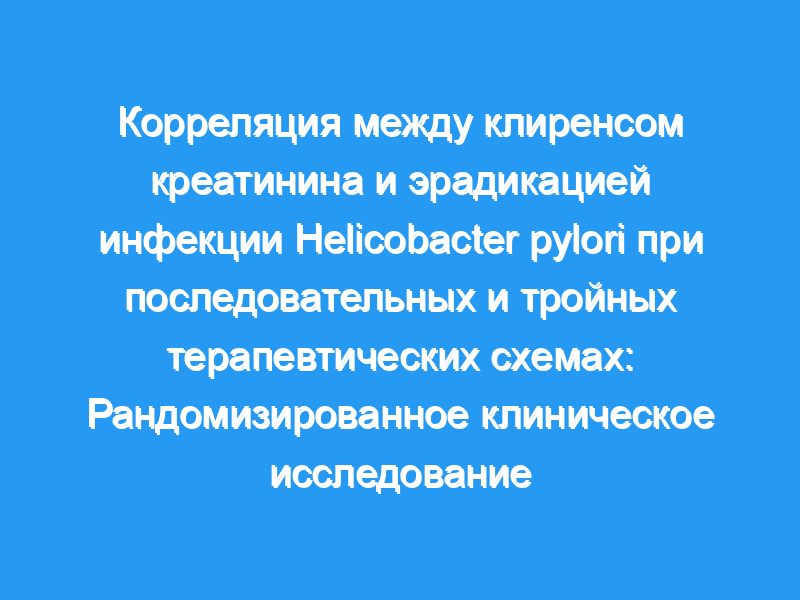 Предпосылки и цели исследования: Пациенты с уремией проявляют восприимчивость к поражению слизистой оболочки желудочно-кишечного тракта и колонизации Helicobacter pylori (HP). Устойчивость к антибиотикам представляет собой проблему при лечении, а препараты висмута токсичны для пациентов с уремией. Целью данного исследования была оценка корреляции между клиренсом креатинина (CrCl) и эрадикацией НР-инфекции с помощью новых последовательных и стандартных тройных терапевтических схем. Пациенты и методы: В это исследование было включено в общей сложности 120 HP-позитивных пациентов с нарушением функции почек и 60 контрольных пациентов с HP-инфекцией. Пациенты были разделены на четыре группы на основе CrCl и были рандомизированы на один из двух различных режимов: 14-дневная стандартная тройная терапия с 20 мг омепразола bid, 1000 мг амоксициллина bid и 500 мг кларитромицина bid и новый последовательный режим с 20 мг омепразола bid и 1000 мг амоксициллина bid в течение 14 дней, 500 мг ципрофлоксацина в течение первых 7 дней и 200 мг фуразолидона в течение последних 7 дней. Дозы амоксициллина, кларитромицина и ципрофлоксацина были снижены до 50% в случаях CrCl <,30mgdl(-1).