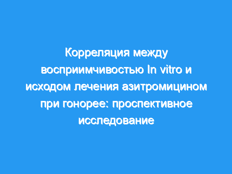 Это проспективное исследование было проведено для определения чувствительности изолятов Neisseria gonorrhoeae к противомикробным препаратам методом дисковой диффузии и минимальной ингибирующей концентрации (MIC) с помощью E-теста с особым акцентом на азитромицин. Кроме того, была оценена корреляция между восприимчивостью in vitro и исходом лечения однократной пероральной дозой азитромицина в дозе 2 г.