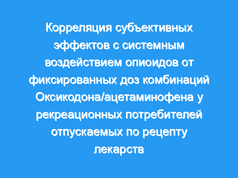 Для корреляции фармакодинамических показателей, связанных со злоупотреблением, и фармакокинетических показателей после введения комбинированных анальгетиков с немедленным высвобождением/пролонгированным высвобождением и немедленным высвобождением оксикодона/ацетаминофена в фиксированных дозах. Рандомизированное, двойное слепое, активное и плацебо-контролируемое, 7-полосное перекрестное исследование. Контрактные исследовательские организации-субъекты. Независимые рекреационные потребители отпускаемых по рецепту опиоидов.