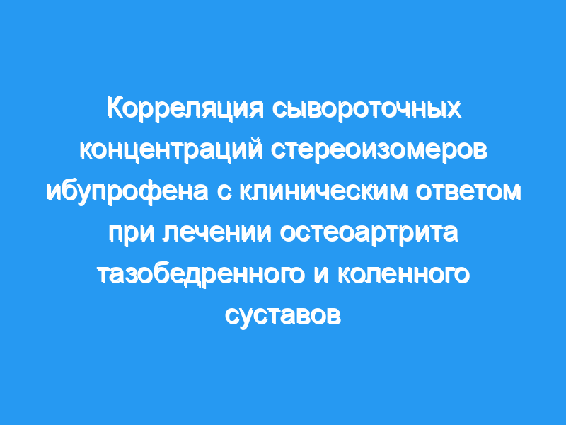 Стереоселективные фармакокинетические измерения активного энантиомера S-ибупрофена коррелировали с клиническим ответом у 45 участников рандомизированного двойного слепого 4-недельного сравнения ибупрофена в дозе 1200 или 2400 мг/сут для лечения остеоартрита тазобедренного или коленного сустава.