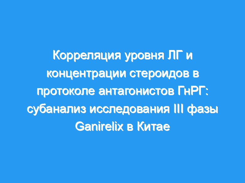 В общей сложности 109 пациентов с протоколом антагонистов ГнРГ были разделены на три подгруппы в соответствии с уровнями ЛГ на шестой день стимуляции (ЛГ <, 25%, 25-75% и >,75%), а также влиянием ЛГ на биосинтез стероидов и связанные с этим Результатов ЭКО между подгруппами не наблюдалось.