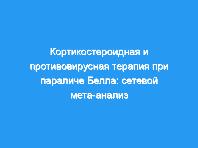 Шесть исследований (всего n = 1805) были признаны приемлемыми и внесли свой вклад в сетевой мета-анализ. Объединенные ОР для разрешения через 3 месяца составили 1,24 (95% ДИ: 0,79 — 1,94) для ацикловира плюс Преднизолон и 1,02 (95% ДИ: 0,73 — 1,42) для Валацикловира плюс Преднизолон по сравнению с одним только преднизолоном. Либо ацикловир, либо валацикловир по отдельности имели значительно более низкую эффективность, чем только преднизолон, т.е. ORS составляли 0·44 (95% ДИ: 0·28 — 0·68 ) и 0·60 (95% ДИ: 0·42 — 0·87), соответственно. Ни один из противовирусных препаратов существенно не отличался по сравнению с плацебо, с объединенным ОР 1·25 (95% ДИ: 0·78 — 1·98 ) для ацикловира и 0·91 (95% ДИ: 0·63 — 1·31 ) для валацикловира. В целом, лечение на основе преднизолона увеличило шансы на выздоровление в 2 раза (95% ДИ: 1·55 — 2·42 ) по сравнению с лечением, не основанным на преднизолоне. Чтобы добиться 1 дополнительного выздоровления, 6 и 26 пациентов нуждаются в лечении ацикловиром и преднизолоном по сравнению с плацебо и только преднизолоном соответственно.