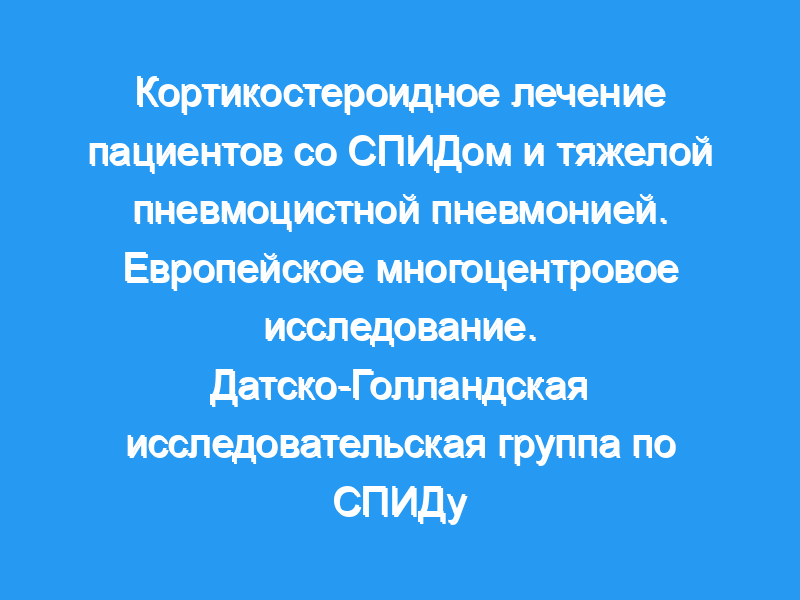 Критериями включения были PaO2 <, 9,0 кПа (67,5 мм рт.ст.) и/или PaCO2 <, 4,0 кПа (30,0 мм рт. ст.). Во время острого эпизода PCP девять (31%) из 29 пациентов контрольной группы умерли по сравнению с тремя (10%) из 30 пациентов с CS, p = 0,01. Искусственная вентиляция легких была необходима 15 пациентам, 12 (41%) в контрольной группе и трем (10%) в группе КС, р = 0,01. 90-дневная выживаемость составила 69% у пациентов, получавших только котримоксазол, по сравнению с 87% у пациентов, получавших дополнительный КС, р = 0,07. Основываясь на этих данных, мы пришли к выводу, что дополнительная КС-терапия при ПКП средней и тяжелой степени у больных СПИДом снижает острую смертность и потребность в искусственной вентиляции легких.