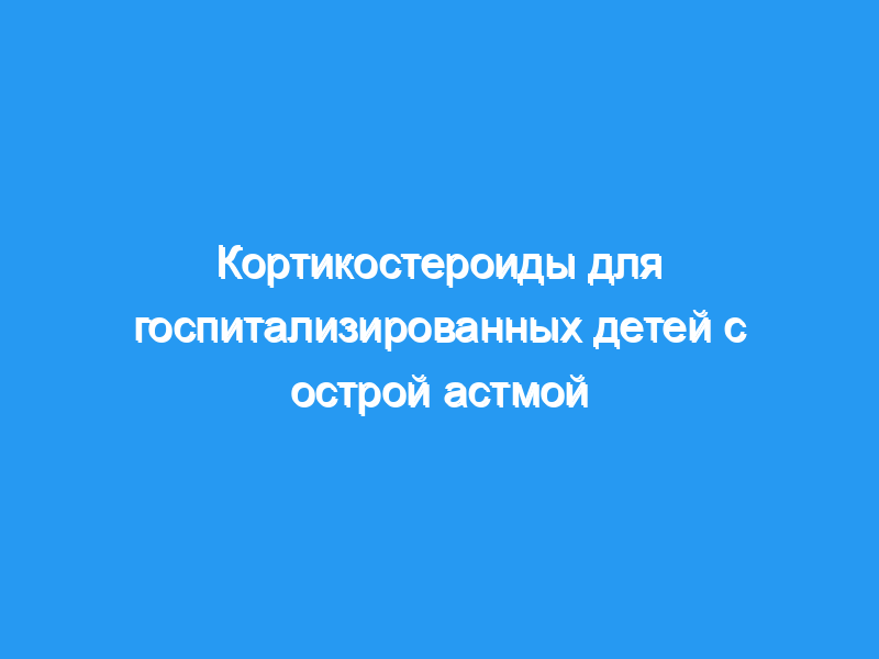 Определить преимущества системных кортикостероидов (пероральных, внутривенных или внутримышечных) по сравнению с плацебо и ингаляционными стероидами при острой детской астме. Стратегия поиска: Все контролируемые исследования были идентифицированы из реестра Cochrane Airways Review Group, путем ручного поиска в респираторных журналах, списках литературы и контактах с экспертами и фармацевтическими компаниями. Критерии отбора: Исследования включались, если они описывали рандомизированное контролируемое исследование (РКИ) с участием детей в возрасте от 1 до 18 лет с тяжелой острой астмой, которые получали пероральные, ингаляционные, внутривенные или внутримышечные кортикостероиды. Были включены только те исследования, в которых пациентам требовалась госпитализация. Сбор и анализ данных: Два рецензента, используя стандартную форму, извлекли все данные. Все данные, числовые расчеты и графические экстраполяции были независимо подтверждены.