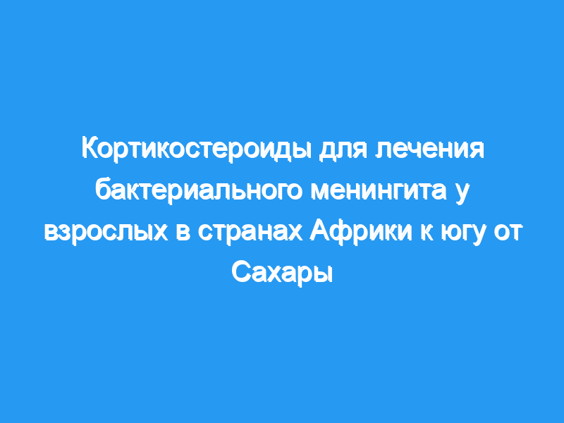 В странах Африки к югу от Сахары бактериальный менингит является распространенным заболеванием и связан с высокой смертностью. Адъювантная терапия кортикостероидами снижает смертность среди взрослых в развитых странах, но она не была должным образом протестирована в развивающихся странах или в контексте прогрессирующей инфекции, вызванной вирусом иммунодефицита человека (ВИЧ).