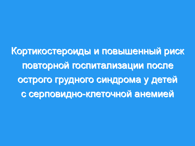 Эти результаты демонстрируют значительно повышенный независимый риск повторной госпитализации после ОКС у детей с астмой и после лечения кортикостероидами и защитного эффекта переливания крови. Хотя дексаметазон доказал свою эффективность в сокращении продолжительности ОКС, значительный риск повторной госпитализации из-за боли должен ограничить его применение.