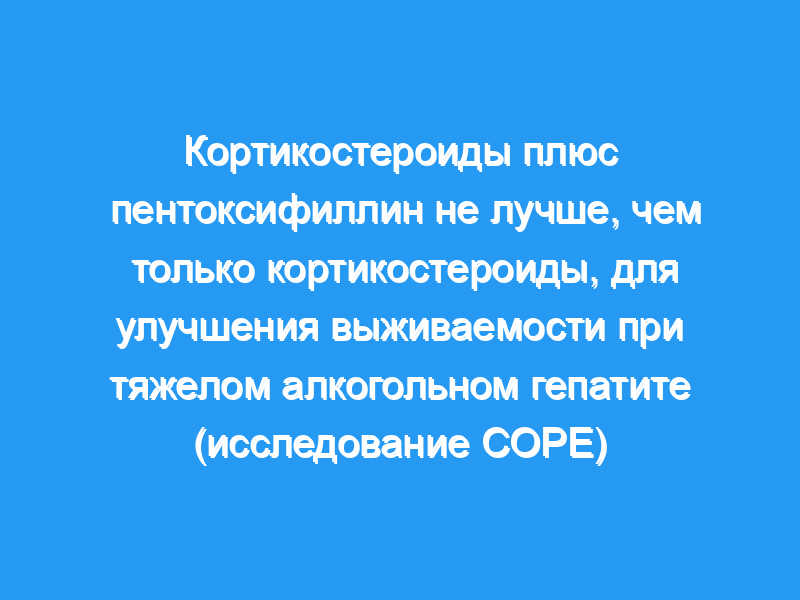 Для пациентов с тяжелым алкогольным гепатитом комбинация кортикостероидов и пентоксифиллина не дает дополнительного преимущества в выживаемости по сравнению с применением только кортикостероидов.