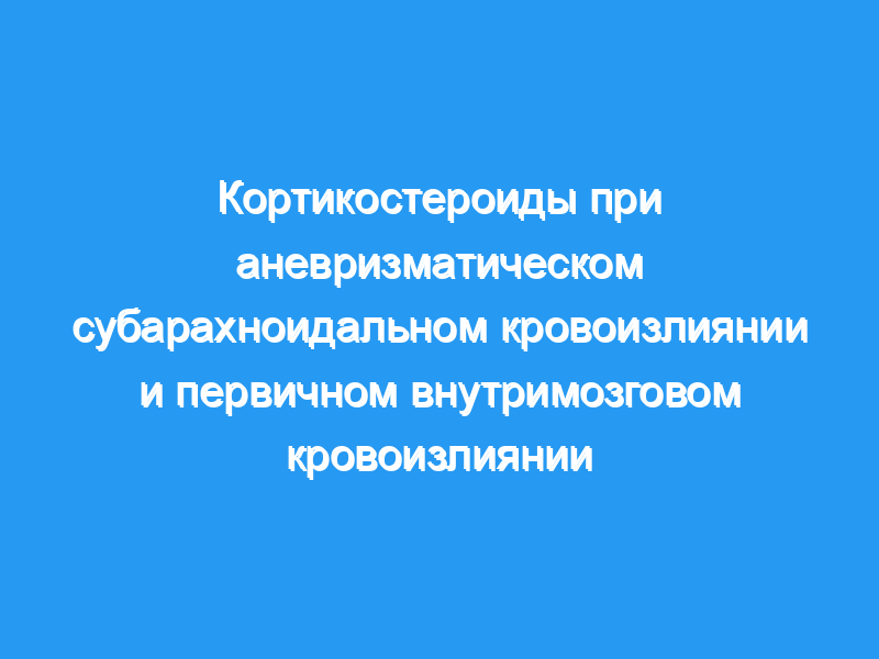 Было выявлено восемь исследований, которые соответствовали критериям приемлемости, в общей сложности 256 рандомизированных пациентов в трех исследованиях SAH и 206 пациентов в пяти исследованиях PICH. Исследования существенно различались в отношении исследуемых групп населения и препаратов, а также методологического качества. Число пациентов, назначенных для лечения гидрокортизоном или флудрокортизона ацетатом у пациентов с САК, или для лечения дексаметазоном у пациентов с ПИЧ, было слишком маленьким, чтобы делать какие-либо окончательные выводы (доверительные интервалы были широкими для любой оценки результатов). Выводы авторов: В целом, нет никаких доказательств благоприятного или неблагоприятного эффекта кортикостероидов у пациентов с SAH или PICH. Доверительные интервалы широки и включают клинически значимые эффекты в обоих направлениях.< / p>