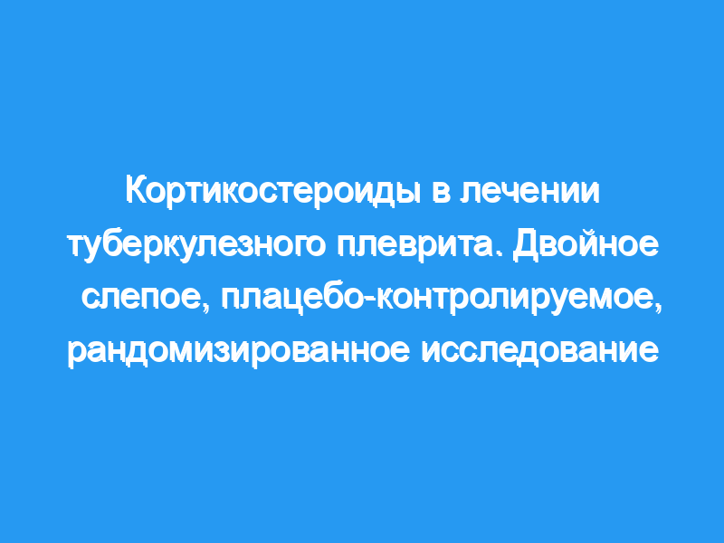 Мы пришли к выводу, что введение кортикостероидов в сочетании с противотуберкулезной химиотерапией позволит быстрее устранить клинические симптомы и ускорить рассасывание плеврального выпота у пациентов с туберкулезным плевритом.