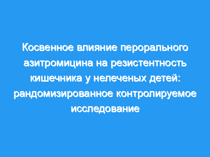 Результаты обнадеживают тем, что прием антибиотиков одним ребенком может не повлиять на резистентность другого ребенка. Пробная регистрация: ClinicalTrials.gov NCT03187834.