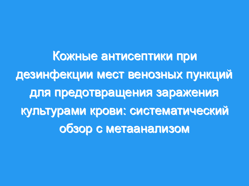 Мы стремились систематически проводить обзор рандомизированных контролируемых исследований (РКИ) с кожные антисептики для предотвращения контаминации в культуре крови, взятой при венозной пункции.