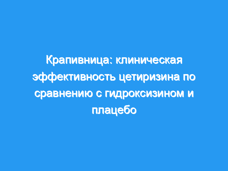 Однако в группе гидроксизина частота сонливости была значительно выше, чем в группе плацебо (р = 0,001). Результаты этого исследования демонстрируют, что цетиризин обладает большим запасом безопасности по сравнению с более старым исходным препаратом гидроксизином.