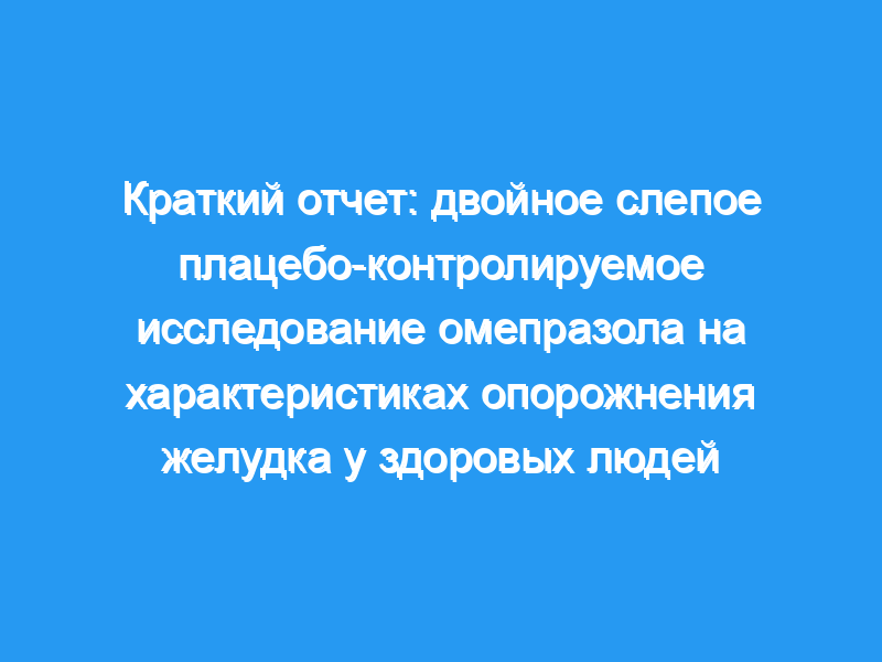 Целью исследования было изучение возможного влияния омепразола на характеристики опорожнения желудка жидким и твердым у здорового субъекта.