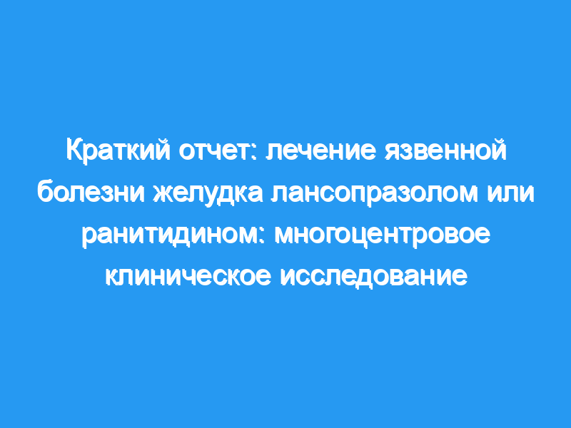 Ста пятидесяти восьми пациентам случайным образом давали либо ранитидин (150 мг каждое утро и перед сном) или лансопразол (30 мг каждое утро и плацебо перед сном). Исследование завершили сто двадцать восемь пациентов (62 принимали лансопразол, 66 — ранитидин). У пятидесяти одного (80%) из тех, кто получал лансопразол, и у сорока двух (62%) из тех, кто получал ранитидин, язвы зажили через 4 недели (P <, 0,05). У шестидесяти одного (98%) пациента, получавшего лансопразол, и у 57 (86%) пациентов, получавших ранитидин, язвы зажили через 8 недель (P <, 0,05). Наблюдаемые различия не были существенными в анализе намерения лечить.