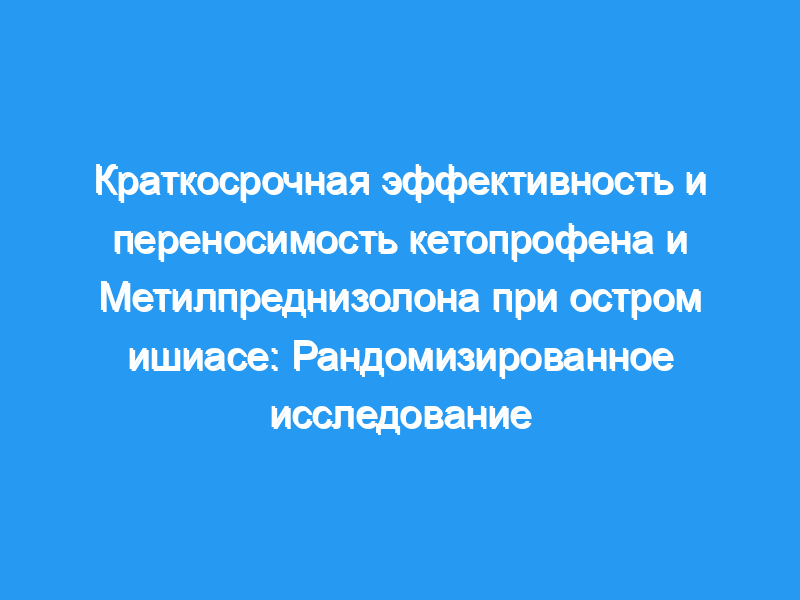 Хотя противовоспалительные препараты обычно используются при остром дискогенном ишиасе, данные об их эффективности скудны и противоречивы. Мы сравнили эффективность и безопасность внутривенного введения кетопрофена и метилпреднизолона с плацебо при ишиасе. Дизайн: Многоцентровое двойное слепое рандомизированное контролируемое исследование. Субъекты: Пациенты с подтвержденным дискогенным острым ишиасом без неврологического дефицита были рандомизированы в три группы.