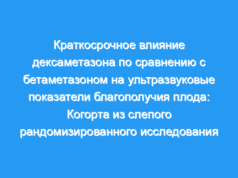 Субизучение слепого рандомизированного исследования дексаметазона против бетаметазона (дано <, 34 недели). Пупочная артерия (UA), средняя мозговая артерия (MCA), венозный проток (DV) и маточная артерия, допплерография, индекс работоспособности миокарда (MPI), биофизический профиль (BPP) и КТГ измерялись до кортикостероида, затем через 1, 2, 4 и 7 дней после кортикостероида.