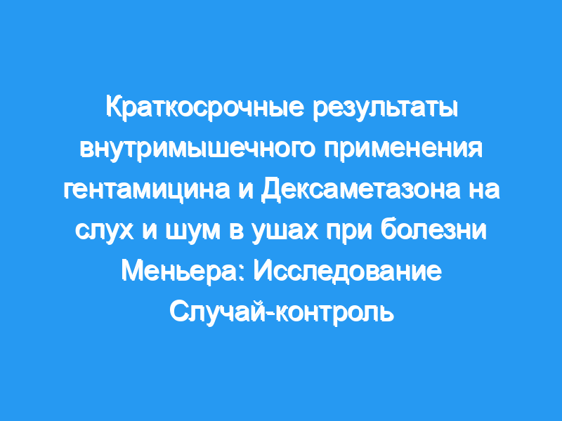 Роль этого исследования заключалась в оценке эффективности внутричерепного введения гентамицина (40 мг/мл) и дексаметазона 0,5 мл (4 мг/мл) в отношении слуха и шума в ушах у пациентов, у которых были повторяющиеся острые приступы головокружения, шума в ушах и потери слуха. План исследования: 60 последовательных пациентов с болезнью Меньера были случайным образом разделены на 3 группы по двадцать пациентов в каждой. В группу А вошли 20 пациентов, получавших внутричерепный гентамицин, в группу В вошли 20 пациентов, получавших внутричерепный дексаметазон, а в группу С вошли 20 пациентов, получавших внутричерепный физиологический раствор 0,5 мл. Средние пороговые значения чистого тона на частотах речи были отмечены до лечения и через 2 недели, 3 месяца и 6 месяцев после лечения. Шум в ушах был опрошен с помощью установленного опросника (Tinnitus Handicap Inventory).
