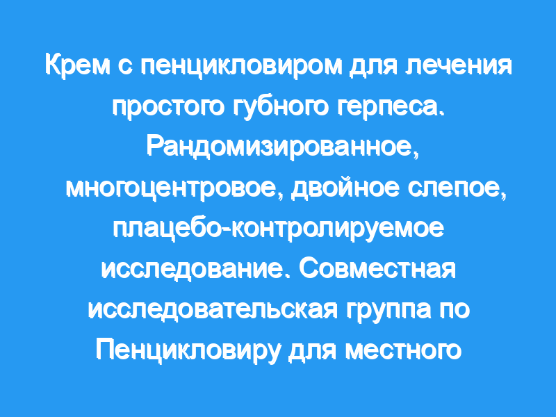 В общей сложности 31 амбулаторная клиника в Соединенных Штатах в различных условиях, включая частную практику, государственные медицинские учреждения и университеты. Пациенты: В остальном здоровые люди с частыми эпизодами простого губного герпеса в анамнезе. В общей сложности 2209 пациентов были включены в исследование и получали исследуемые препараты, а 1573 начали лечение по поводу рецидива. Вмешательства: Крем для местного применения с 1% пенцикловиром или крем для контроля носителя. Испытуемые применяли лечение каждые 2 часа во время бодрствования в течение 4 дней подряд. Основные показатели результата: Заживление повреждений было основной переменной эффективности. Вторичные конечные точки включали время до потери боли в очаге поражения и время до прекращения выделения вируса.