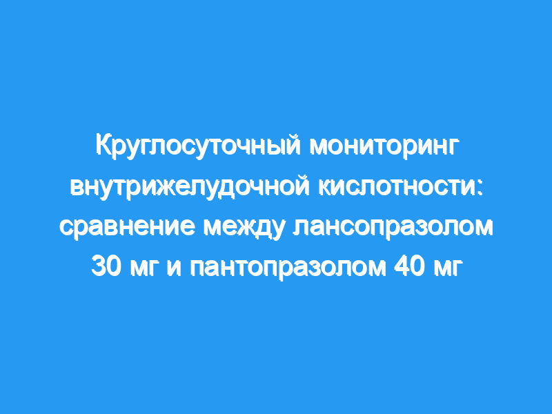 На сегодняшний день нет опубликованного исследования, сравнивающего влияние лансопразола и пантопразола на ингибирование секреции желудочной кислоты. Целью этого исследования было сравнить влияние этих двух препаратов на 24-часовую внутрижелудочную рН-метрию. Дизайн: Двенадцать здоровых добровольцев были включены в открытое рандомизированное перекрестное исследование. Каждый субъект получал лансопразол в дозе 30 мг в течение 7 дней, а затем, после 14-дневного периода вымывания, пантопразол в дозе 40 мг в течение 7 дней или наоборот. Внутрижелудочный 24-часовой мониторинг рН проводили перед лечением, а затем после первого и седьмого приема в каждый период лечения.