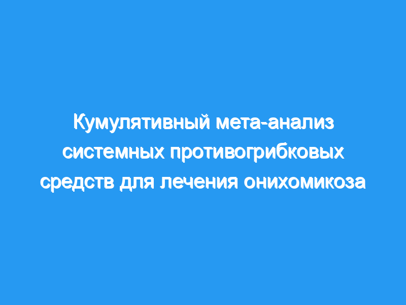 Мы искали в MEDLINE (с 1966 по ноябрь 2002 года) соответствующие исследования, оценивающие эффективность пероральных противогрибковых препаратов тербинафина, итраконазола (импульсного или непрерывного действия), флуконазола и гризеофульвина для лечения дерматофитного онихомикоза ногтей на ногах. Исследования, включенные в этот мета-анализ, требовали стандартного принятого режима дозирования, продолжительности лечения и периода наблюдения. Чтобы определить кумулятивное среднее метааналитическое значение, исследования последовательно объединялись путем добавления по одному исследованию за раз в соответствии с датой публикации (т.е. от самого раннего к самому последнему).