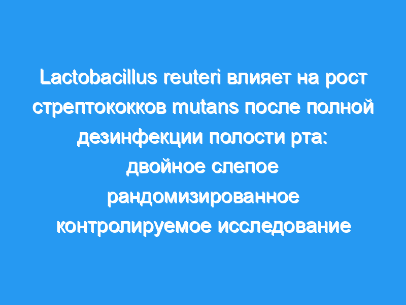 В этом исследовании оценивалось, может ли персистенция Lactobacillus reuteri DSM 17938 и ATCC PTA 5289 в слюне задержать повторный рост стрептококков mutans (MS) после полной дезинфекции полости рта хлоргексидином (CHX). Было проведено рандомизированное двойное слепое плацебо-контролируемое исследование с 6-недельным интервенционным периодом и 3- и 6-месячным наблюдением.62 здоровых субъекта с умеренным или высоким уровнем рассеянного склероза были случайным образом распределены в тестовую группу (n = 32) или группу плацебо (n = 30). Перед началом вмешательства испытуемые прошли два сеанса профессиональной чистки, чистки зубной нитью и нанесения лака CHX, а между сеансами (2 дня) полоскали рот раствором CHX. После этого испытуемая группа использовала пробиотические пастилки (2 раза в день), содержащие L. reuteri (DSM 17938 и ATCC PTA 5289, 1 × 10(8) КОЕ каждого штамма), а группа плацебо использовала идентичные пастилки, в которых отсутствовали лактобациллы.