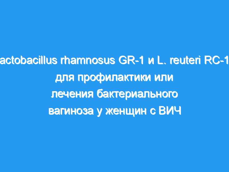 Добавки использование пробиотиков L. rhamnosus GR-1 и L. reuteri RC-14 не способствовало излечению БВ у женщин, живущих с ВИЧ, но может предотвратить это заболевание среди этой популяции. Пробная регистрация: NCT00536848.
