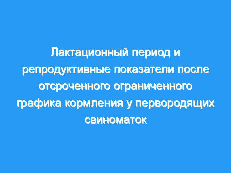 Обработка не повлияла на последующий размер помета, хотя численно он был ниже для IS21 (P >, 0,05). Настоящее исследование показало, что у современных первородящих свиноматок может быть индуцирована лактационная эструс, и беременность может поддерживаться с той же скоростью и производить сопоставимые последующие размеры помета по сравнению с обычными отлученными от груди свиноматками, когда ИС начинается через четыре недели после опороса.