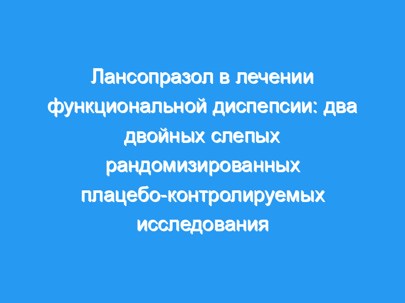 Эффективность терапии ингибиторами протонной помпы для устранения симптомов у пациентов с функциональной диспепсией остается спорной. Это исследование было разработано для сравнения эффективности лансопразола и плацебо в облегчении дискомфорта в верхней части живота у пациентов с функциональной диспепсией.