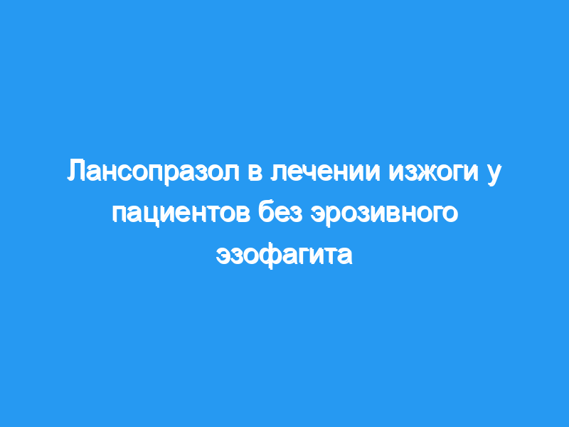 Результаты этого исследования демонстрируют, что лансопразол является подходящей терапией для пациентов с симптоматической неэрозивной ГЭРБ.