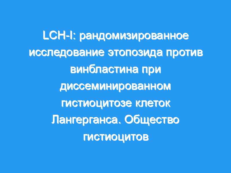В этом отчете рассматриваются обоснование, дизайн и прогресс LCH-I, в котором сравниваются этопозид (VP-16) и винбластин в лечении диссеминированного LCH. Приведены данные о риске этопозид-ассоциированного (индуцированного терапией) злокачественного новообразования на фоне гистиоцитоза.