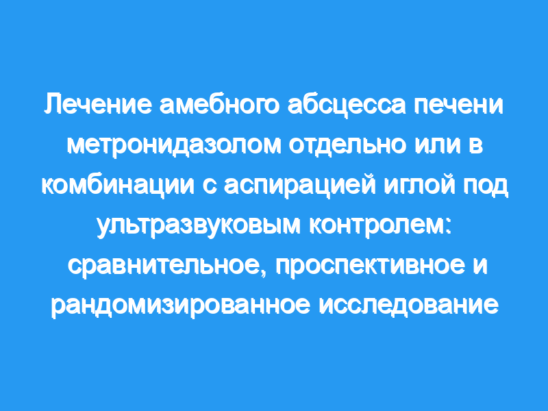 Девятнадцать пациентов лечились метронидазолом в течение 10 дней одному и 20 пациентам была проведена пункция под контролем ультразвука с аспирацией абсцессной жидкости в дополнение к введению препарата.