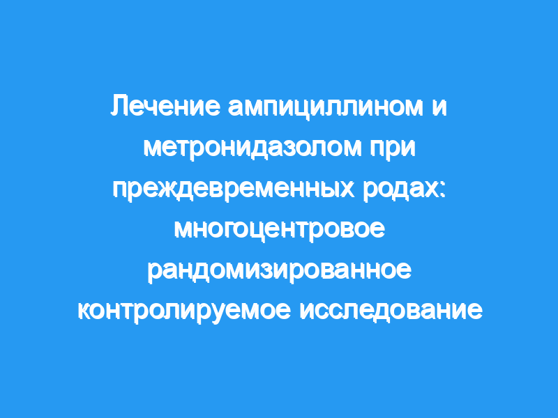 Выяснить, могут ли адъювантные ампициллин и метронидазол, назначаемые женщинам при преждевременных родах с неповрежденными плодными оболочками, продлить беременность и снизить перинатальную смертность и заболеваемость. Дизайн: Многоцентровое, проспективное, рандомизированное контролируемое исследование.