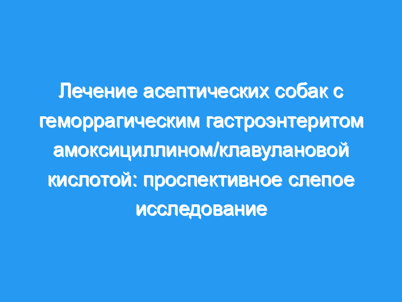 Целью этого проспективного плацебо-контролируемого слепого исследования было оценить, улучшает ли лечение амоксициллином/клавулановой кислотой клиническое течение и исход HGE у собак, у которых нет признаков сепсиса. Животные: В исследовании приняли участие 60 собак с диагнозом HGE в период с 2007 по 2009 год в Клинике медицины мелких животных Мюнхенского университета LMU, Германия. Критерием включения было наличие острой геморрагической диареи (<,3 дня). Собаки, предварительно обработанные антибиотиками, с признаками сепсиса или с диагнозом любого заболевания, которое, как известно, вызывает кровавую диарею, были исключены из исследования.