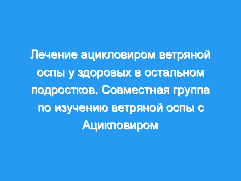 Дома пациентов и клиники университетских больниц. Пациенты: В исследование были включены шестьдесят восемь подростков в возрасте от 13 до 18 лет с ветряной оспой. Из 62 подростков с лабораторно подтвержденной ветряной оспой, которые были включены в окончательный анализ, 31 получал ацикловир и 31 получал плацебо. Вмешательства: Плацебо или таблетку ацикловира по 800 мг принимали внутрь четыре раза в день в течение 5 дней, начиная с 24 часов после появления сыпи. Измерения и основные результаты: У реципиентов ацикловира наблюдалось значительное сокращение времени до прекращения образования новых очагов поражения (р менее 0,001), максимального количества очагов поражения (р = 0,019) и замедления роста (р = 0,045). Средний балл конституционального заболевания был значительно снижен на 4-й день (0,5 против 1,5, р = 0,05), как и среднее количество остаточных гипопигментированных поражений, присутствующих при 28-дневном последующем обследовании (22,7 против 92,7, р = 0,018). У реципиентов плацебо произошли два осложнения, оба — бактериальные суперинфекции. Побочные эффекты и титры антител к вирусу ветряной оспы, измеренные через 28 дней после зачисления, были одинаковыми в обеих группах лечения. Сравнение пациентов, получавших плацебо, с детьми в возрасте от 2 до 12 лет, участвовавшими в сопутствующем исследовании, показало, что ветряная оспа протекает более тяжело у подростков: среднее максимальное общее количество поражений (421 против 347, р = 0,003), средний максимальный балл конституционального заболевания (3,1 против 2,2, р = 0,032) и среднее количество остаточных поражений (92,7 против 33,2, р = 0,01) было больше в подростковой популяции.
