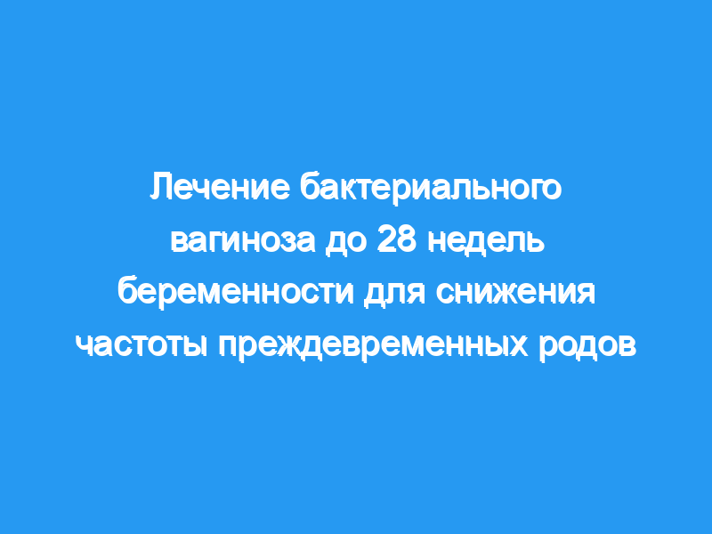 Применение перорального метронидазола или вагинального клиндамицина для лечения БВ до 28 недель беременности не привело к снижению частоты ПТЛ. не снижает заболеваемость PTL. Регистрация PROSPERO: CRD42018086173.