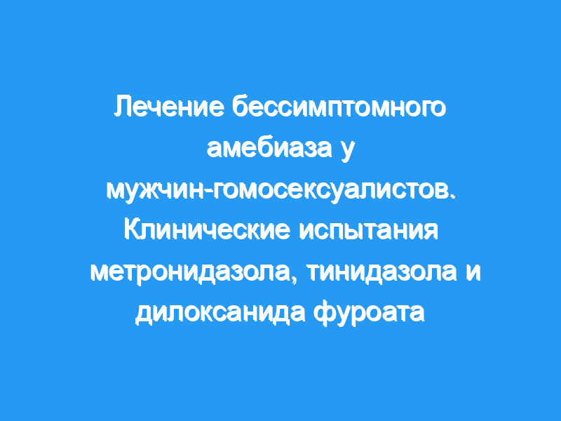 В рандомизированном исследовании авторы лечили 42 бессимптомных гомосексуалистов, у которых в образцах кала была обнаружена Entamoeba histolytica, либо метронидазолом, либо тинидазолом (исследование 1). Они лечили обе группы первоначально 2000 мг в однократной дозе, а в случае неудачи — 2000 мг ежедневно в течение 5 дней.