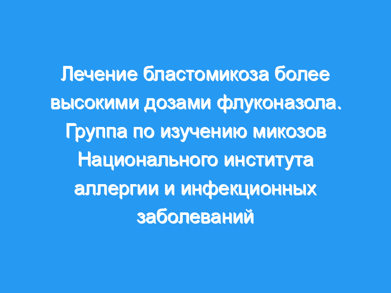 Мы пришли к выводу, что флуконазол в суточных дозах от 400 до 800 мг в течение не менее 6 месяцев является эффективной терапией не угрожающего жизни бластомикоза.