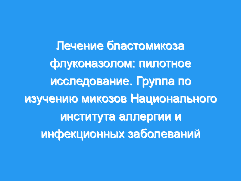 Мы провели многоцентровое рандомизированное открытое пилотное исследование, в котором сравнивались две суточные дозы флуконазола (200 мг и 400 мг) при лечении не угрожающих жизни бластомикозов, не связанных с ЦНС.