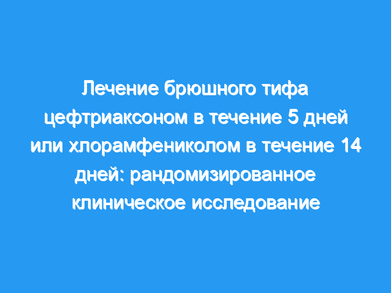 Мы пришли к выводу, что короткий 5-дневный курс цефтриаксона является полезной альтернативой традиционной 14-дневной терапии хлорамфениколом при лечении брюшного тифа.