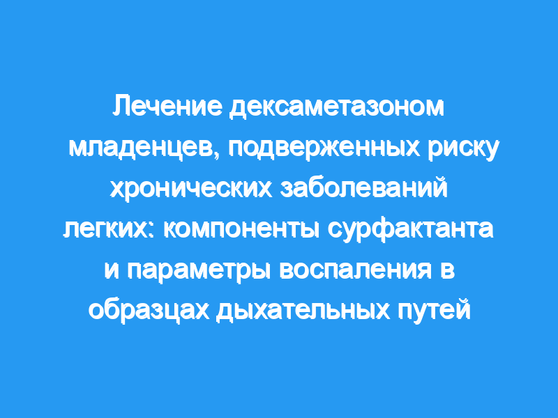 В настоящем рандомизированном исследовании мы оценили гипотезу о том, что лечение дексаметазоном (DEX) маленьких недоношенных детей с риском хронических заболеваний легких благоприятно влияет на систему сурфактанта..