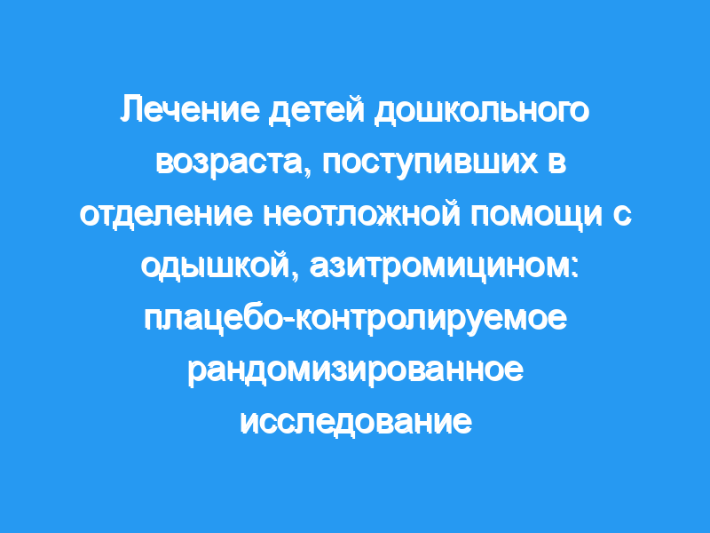 Антибиотики часто используются для лечения одышки у детей. Макролиды могут быть эффективны при лечении бронхиолита и астмы. Метод: Мы завершили проспективное двойное слепое рандомизированное плацебо-контрольное исследование азитромицина среди детей дошкольного возраста (в возрасте от 12 до 60 месяцев), поступивших в отделение неотложной помощи с одышкой. Пациенты были рандомизированы для получения либо пятидневного приема азитромицина, либо плацебо. Первичным результатом было время для устранения респираторных симптомов после начала лечения. Вторичные результаты включали количество дней, в течение которых дети принимали бета-агонисты короткого действия в течение 21 дня наблюдения, и время до обострения заболевания в течение следующих шести месяцев (незапланированный визит к врачу или лечение пероральными кортикостероидами при острых респираторных симптомах).